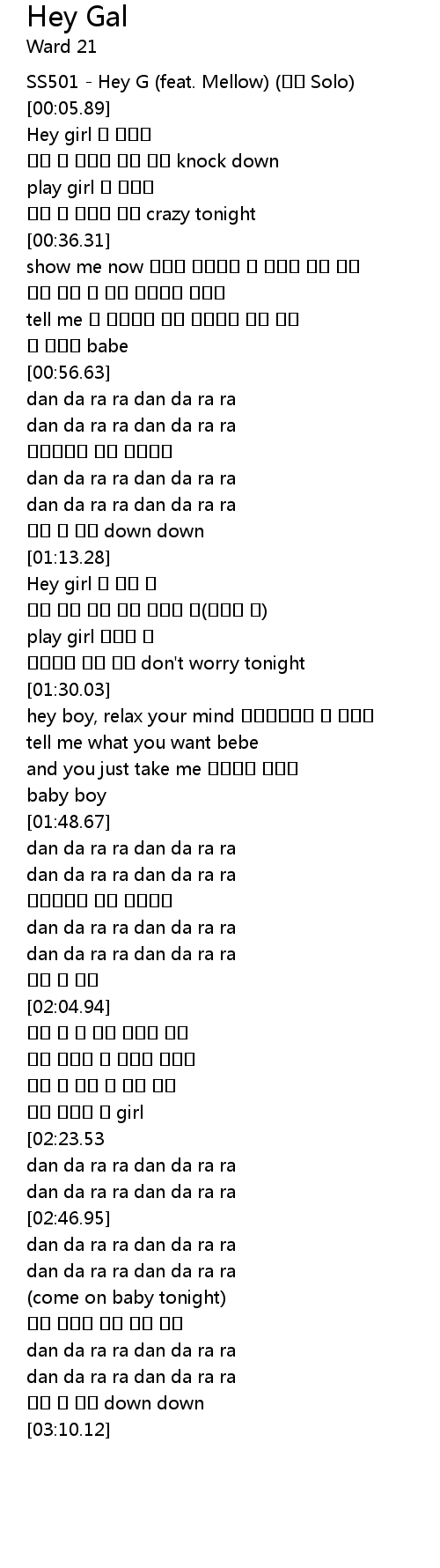 | [00:01.12] | SS501 Hey G feat. Mellow Solo |