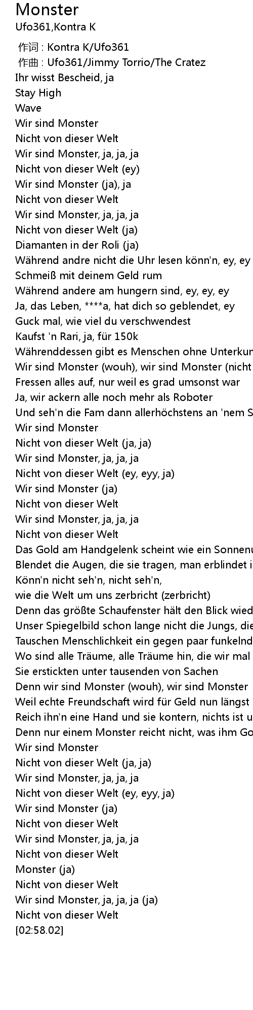 | [02:24.58] | Wir sind Monster, ja, ja, ja |