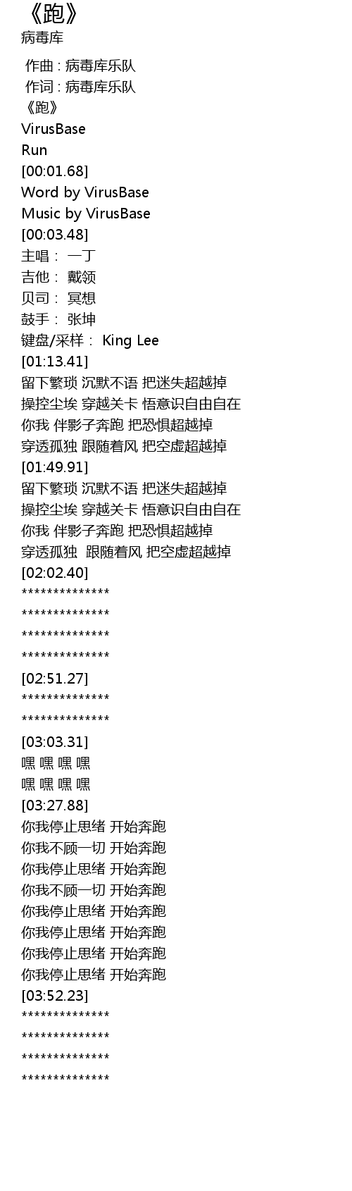 | [00:00.00] | 作曲 : 病毒库乐队 |