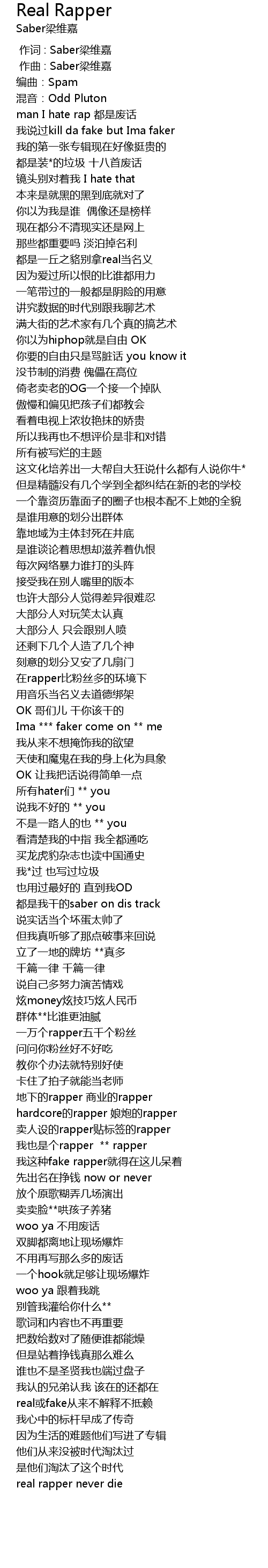 | [02:01.29] | dōu shì wǒ gàn de saber on dis track |