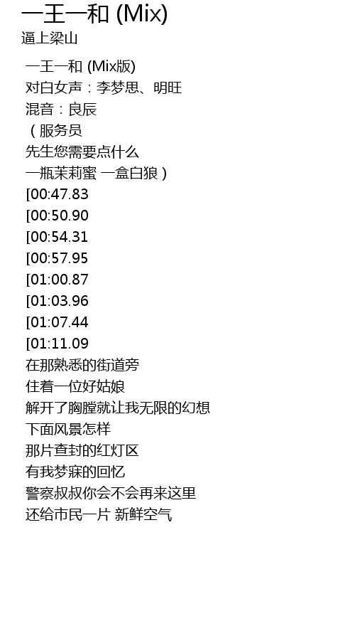 | [00:01.44] | yī wáng yī hé Mix bǎn |