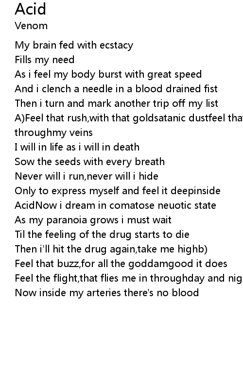 A)Feel that rush,with that goldsatanic dustfeel that pain,the drug induce throughmy veins |