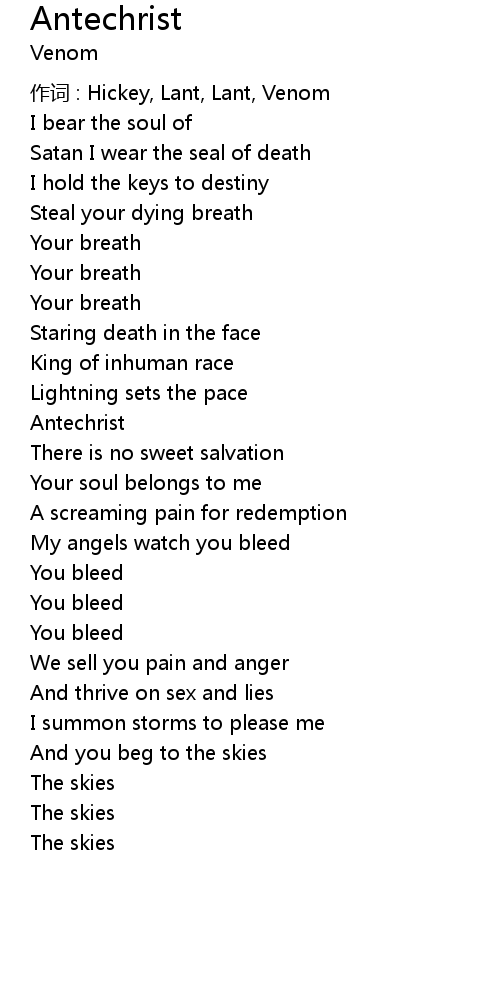 | 作词 : Hickey, Lant, Lant, Venom | |