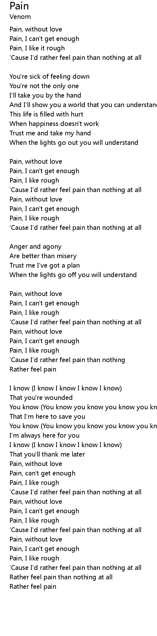 Pain, I can't get enough |