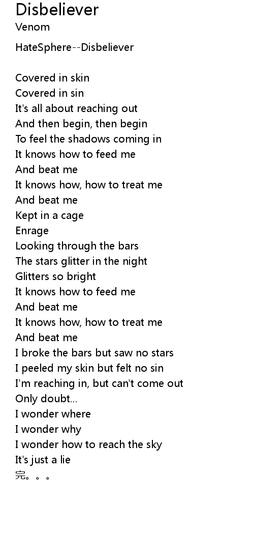 | Song | Disbeliever |