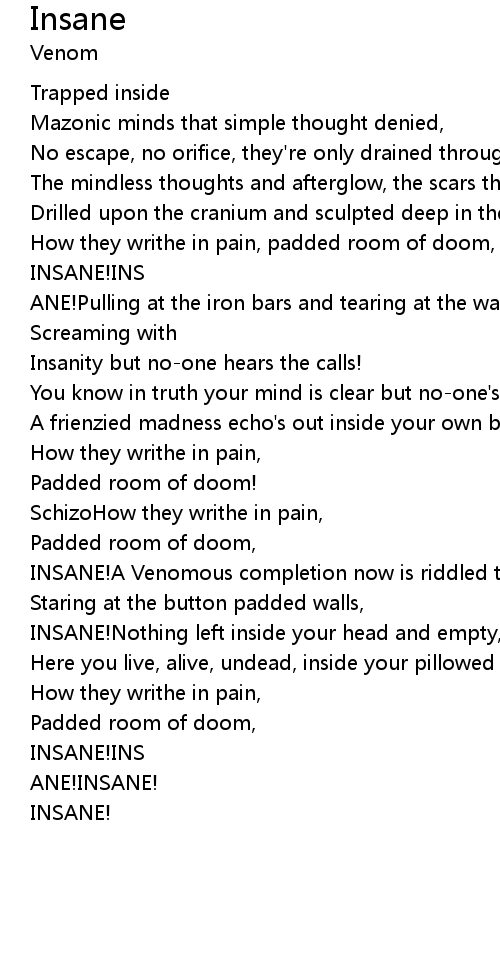 INSANE!A Venomous completion now is riddled through you veins, |