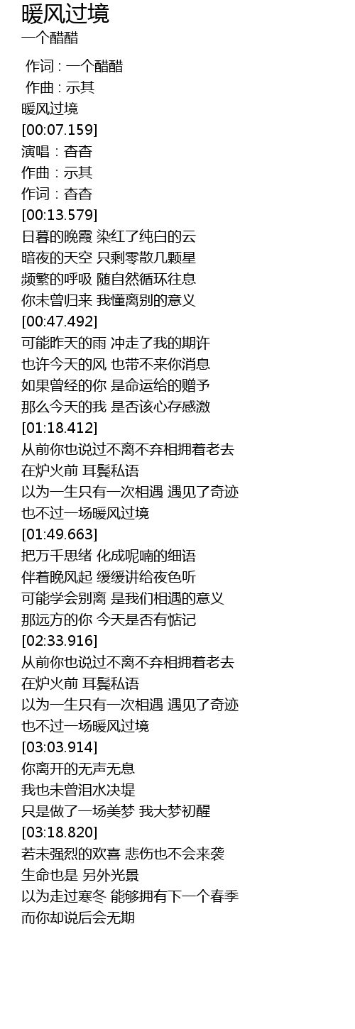 | [01:41.662] | yě bù guò yī chǎng nuǎn fēng guò jìng |