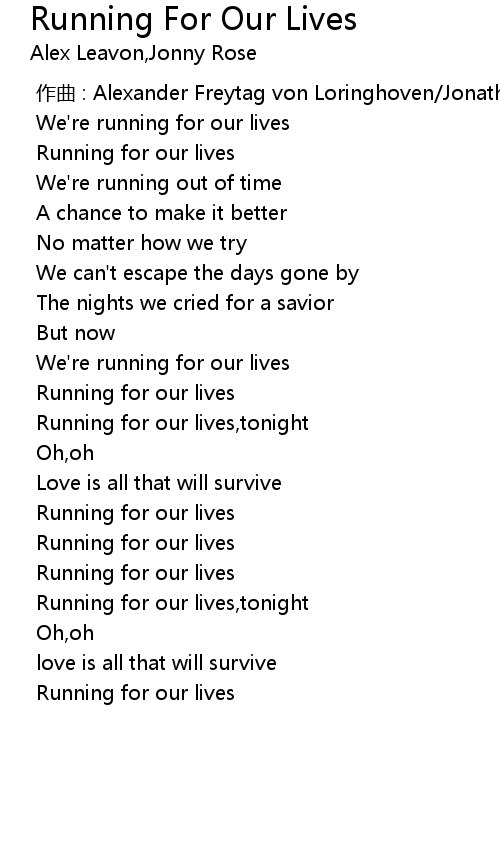 | [00:01.843] | We' re running for our lives |