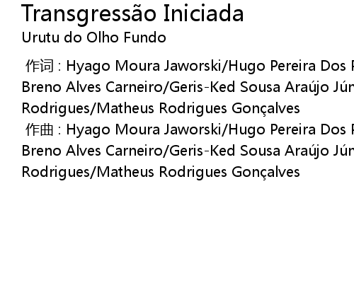 | [00:00.00-1] | zuò qǔ : Hyago Moura Jaworski Hugo Pereira Dos Prazeres Victor Breno Alves Carneiro GerisKed Sousa Araú jo Jú nior Iohay Timbó Rodrigues Matheus Rodrigues Gon alves |