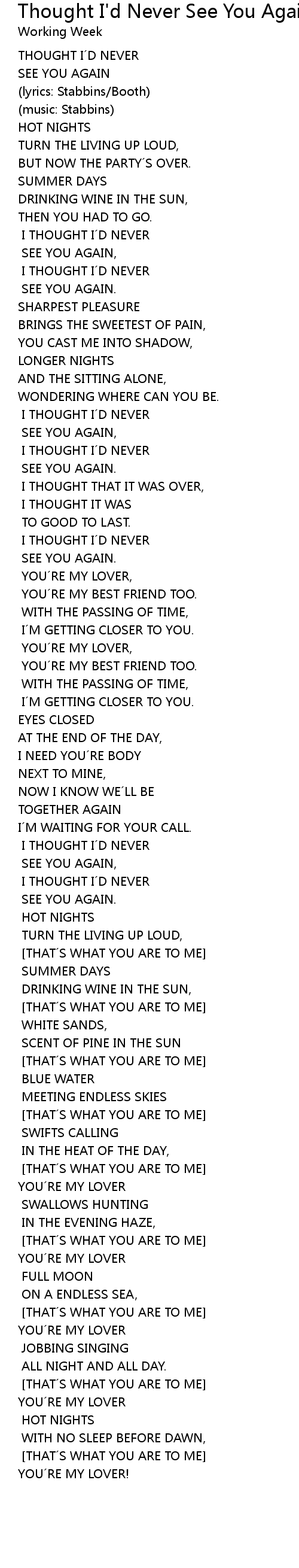 | I THOUGHT I´D NEVER | |