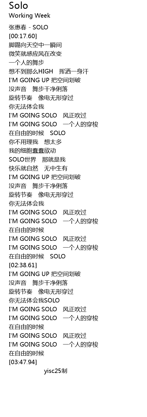 | [01:03.73] | I' M GOING SOLO yi ge ren de chuan suo |