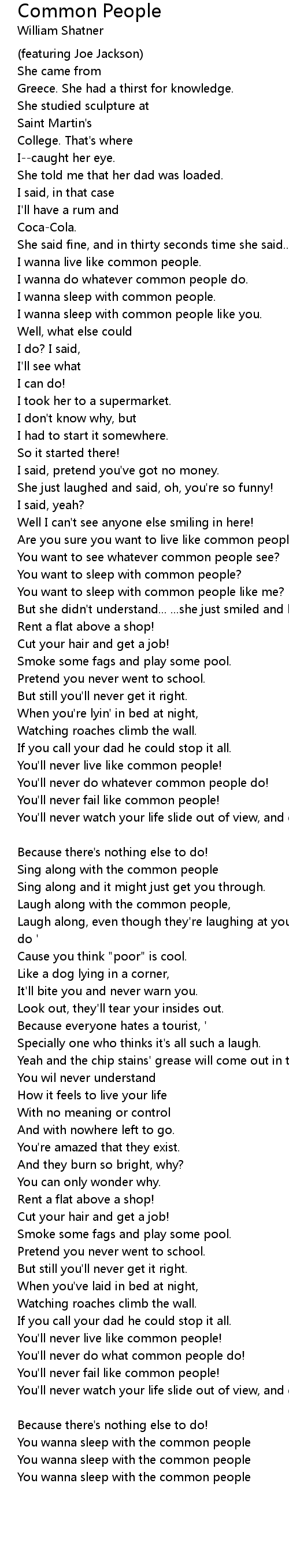 I wanna sleep with common people. |