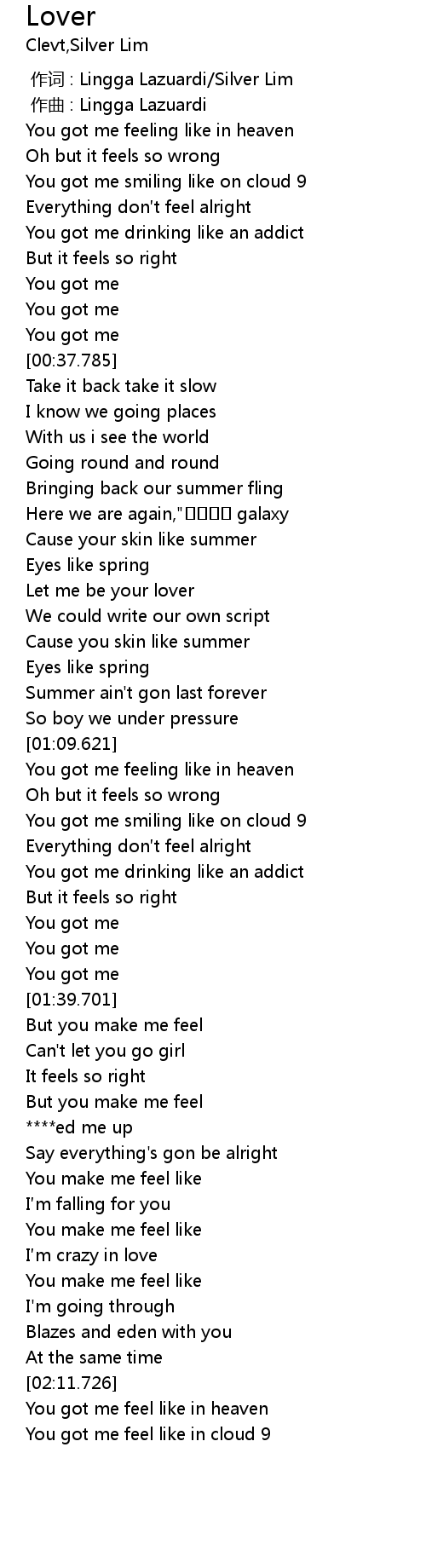 | [01:17.391] | You got me smiling like on cloud 9 |