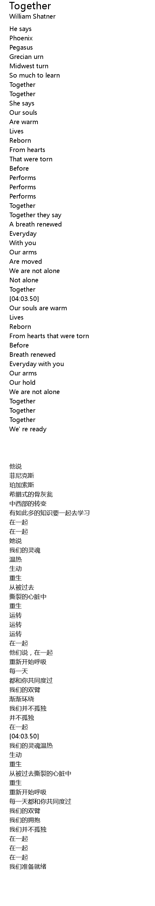 | [03:44.88] | Together |