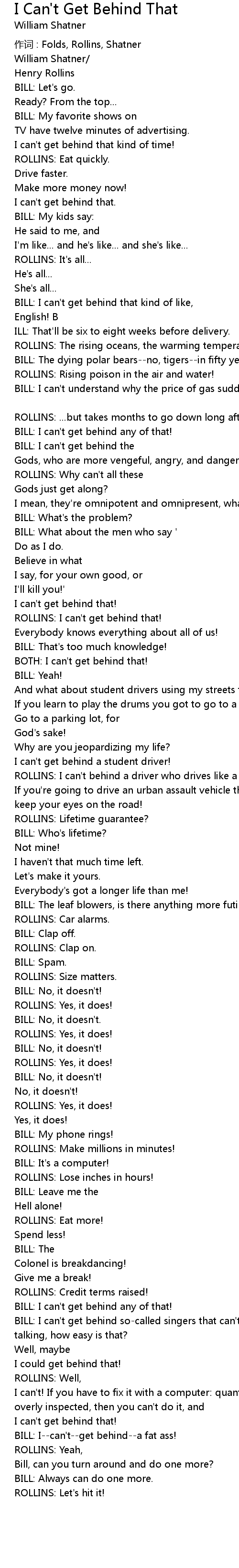 | 作词 : Folds, Rollins, Shatner | |