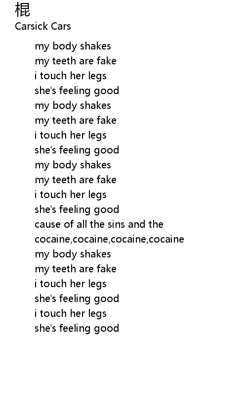 | [02:26.390] | cocaine, cocaine, cocaine, cocaine |