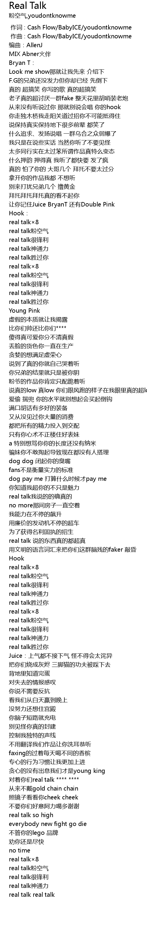 | [02:38.756] | real talk 说的东西真的都超真 |
