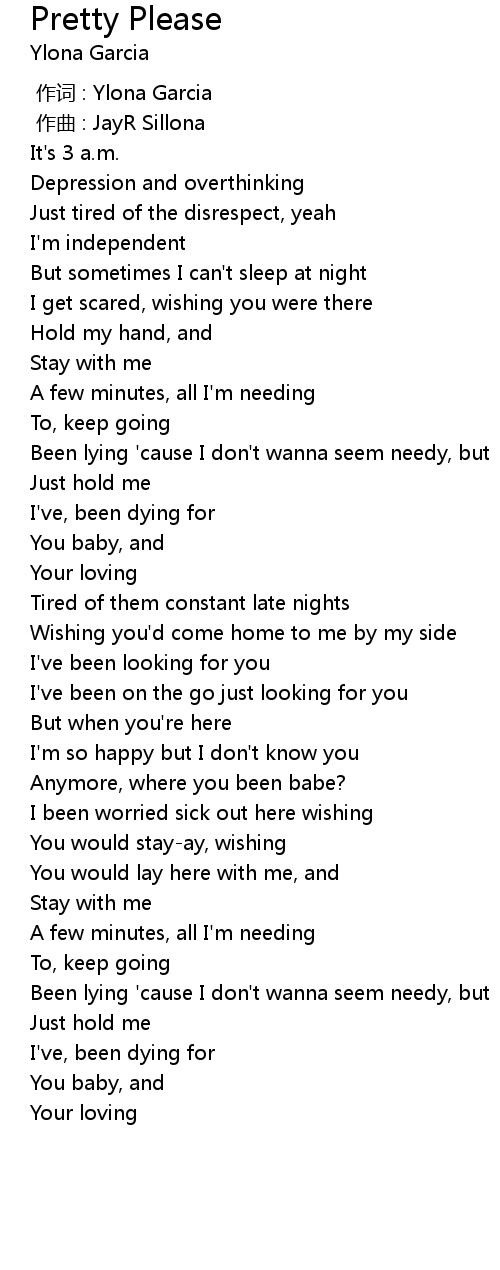 | [00:54.439] | Been lying ' cause I don' t wanna seem needy, but |