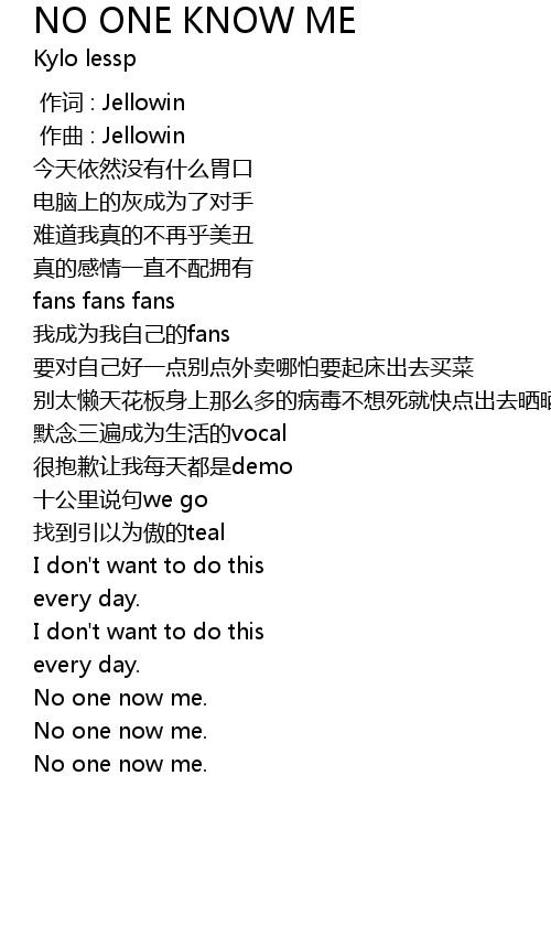 | Song | NO ONE KNOW ME |