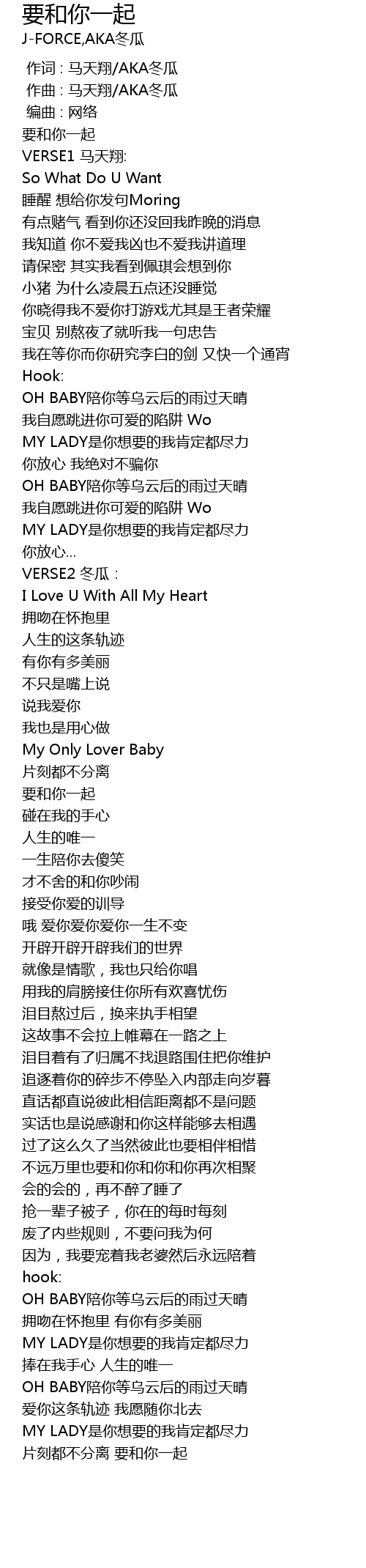 | [00:00.000] | 作词 : 马天翔/AKA冬瓜 |