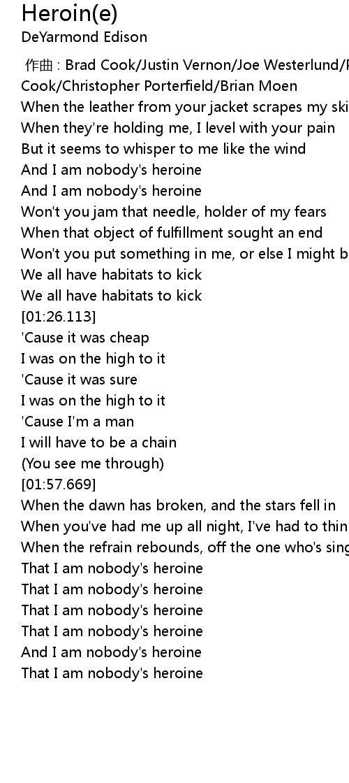 | [02:58.587] | And I am nobody's heroine |
