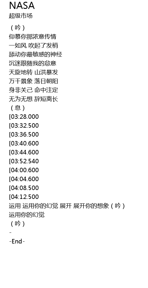 | [01:20.600][03:44.600]] | 运用你的幻觉 展开想象 |
