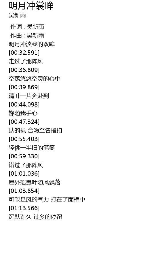 | [00:01.000] | zuò qǔ : wú xīn yǔ |