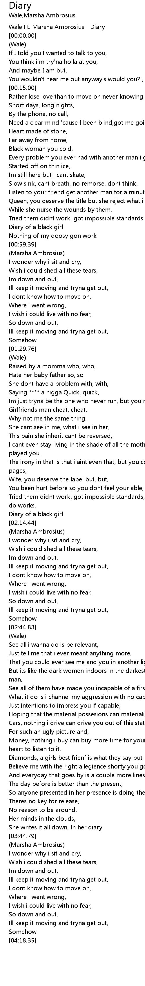 Wale Ft. Marsha Ambrosius - Diary |