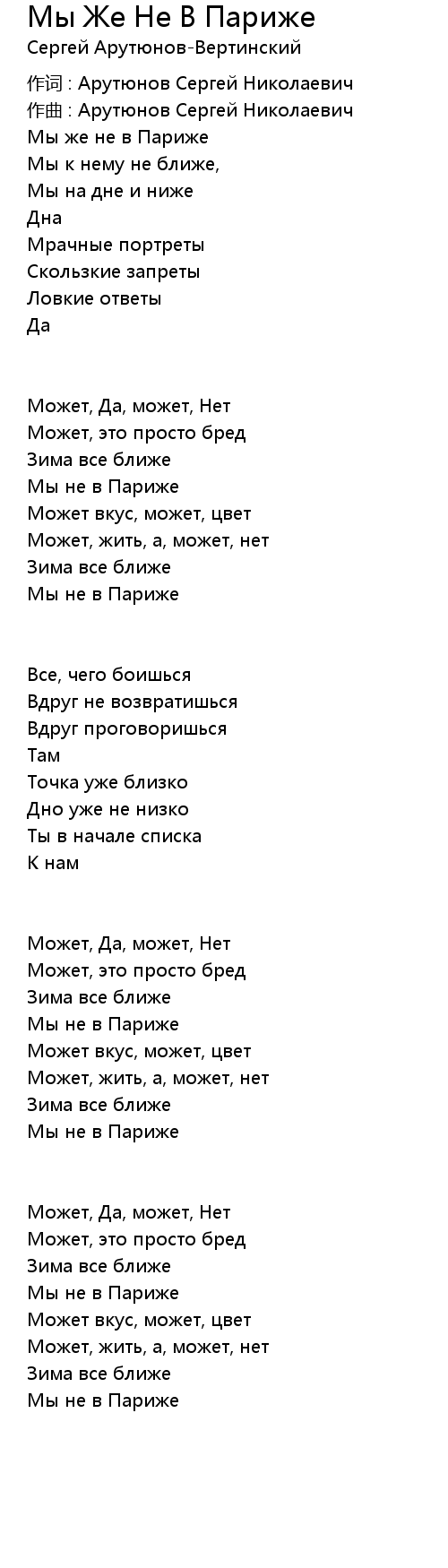 作词 : Арутюнов Сергей Николаевич |