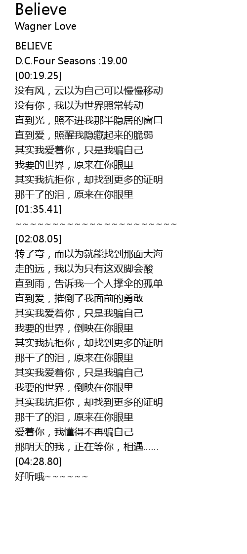 | [00:03.07] | BELIEVE |