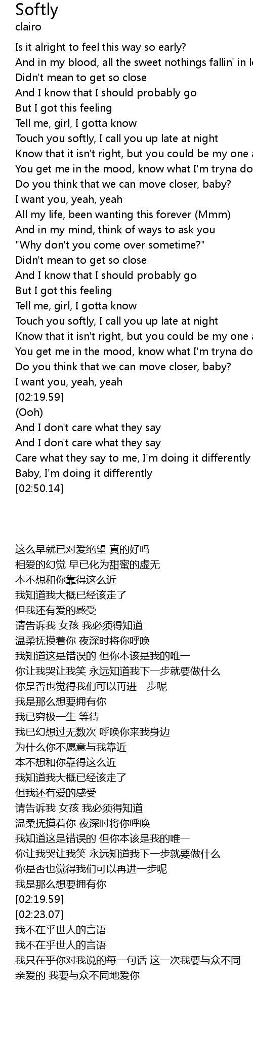 | [00:40.50] | Touch you softly, I call you up late at night |