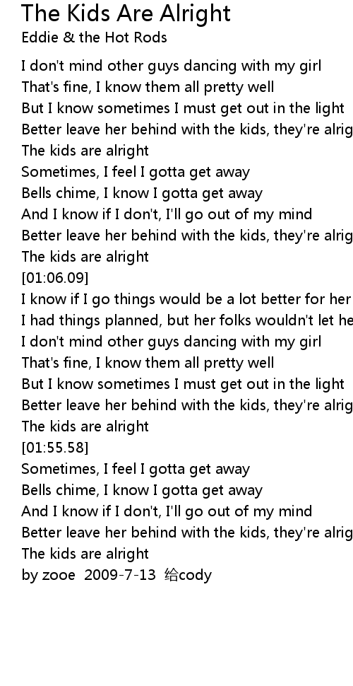 | [00:55.96] | Better leave her behind with the kids, they're alright |