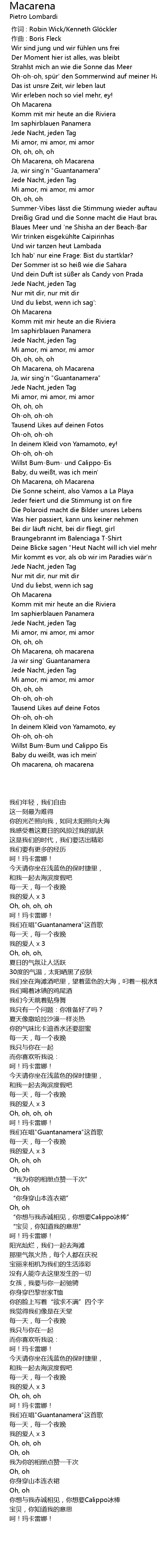 | [00:51.896] | Wir trinken eisgekü hlte Caipirinhas |
