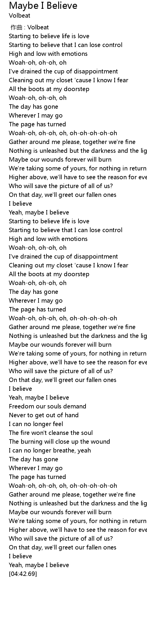 | [03:02.95] | Yeah, maybe I believe |