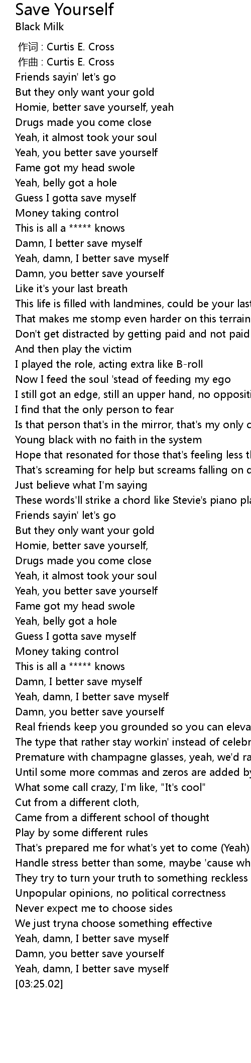 | [01:32.70] | That's screaming for help but screams falling on deaf ears |