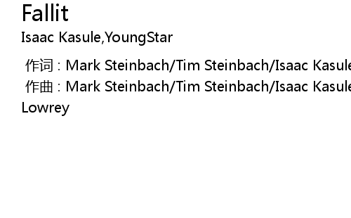 | [00:00.00-1] | zuò qǔ : Mark Steinbach Tim Steinbach Isaac Kasule Sivas Mike Lowrey |