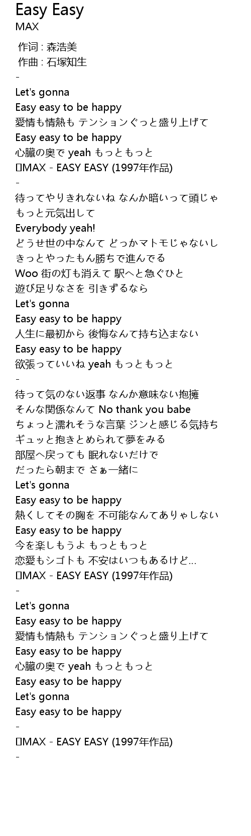 | [00:35.374] | MAX EASY EASY 1997 nián zuò pǐn |