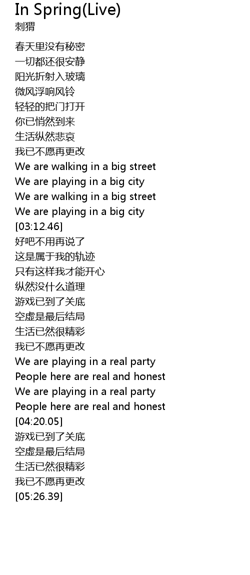| [02:21.38] | chūn tiān lǐ méi yǒu mì mì |