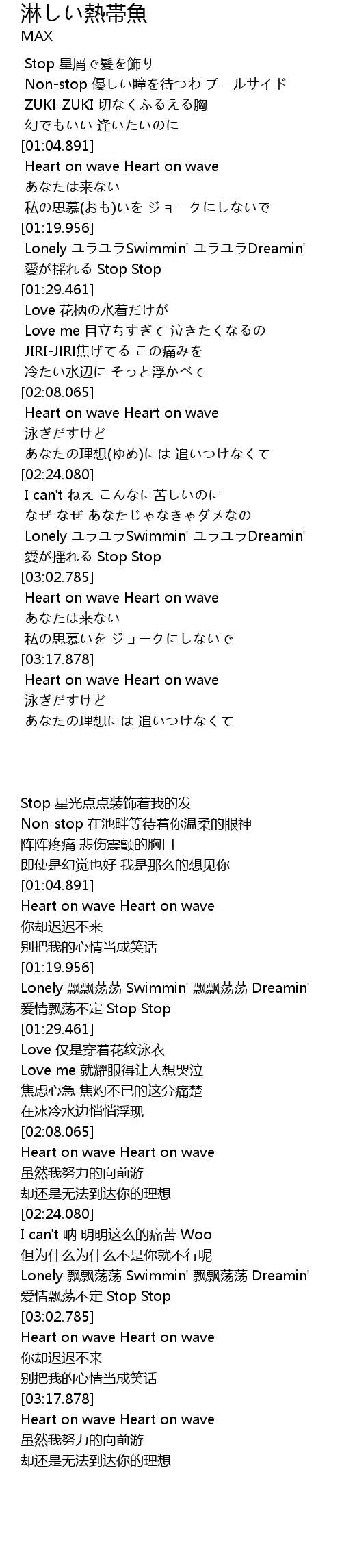 | [03:03.068] | Heart on wave Heart on wave |