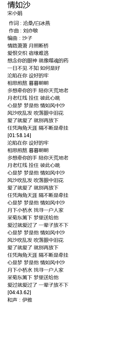| [03:46.22] | 心是梦 梦是他 情如风中沙 |