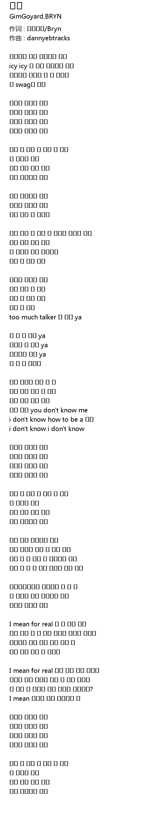 作词 : 김고야드/Bryn |