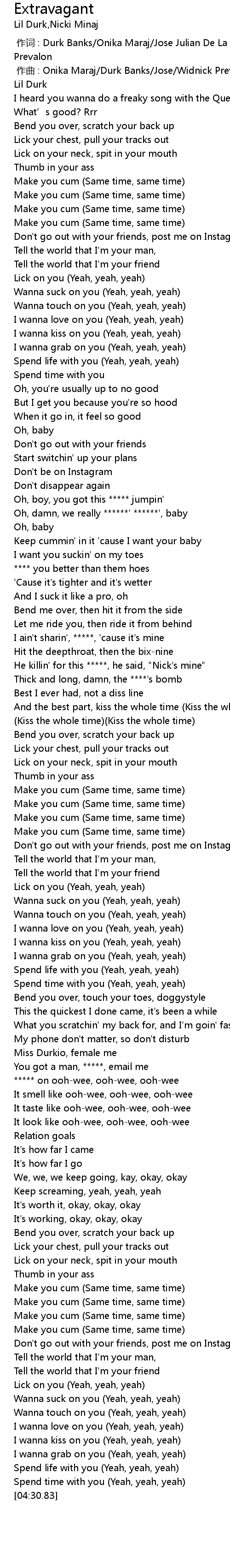 | [04:16.22] | Wanna suck on you (Yeah, yeah, yeah) |
