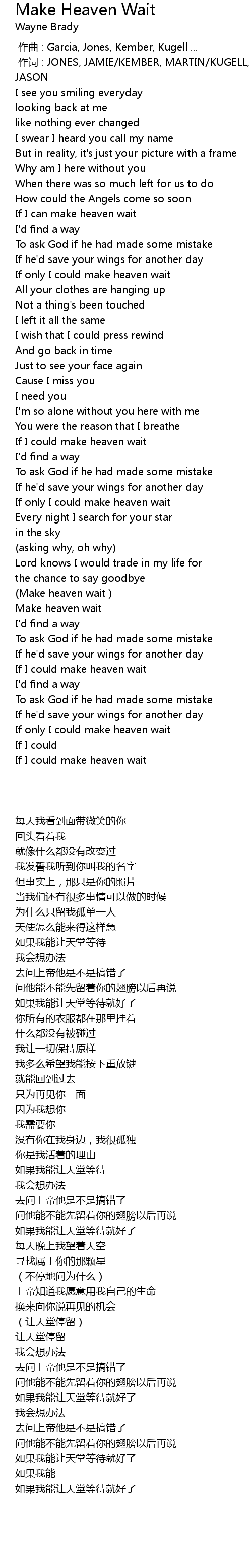 | [00:50.300] | If I can make heaven wait |
