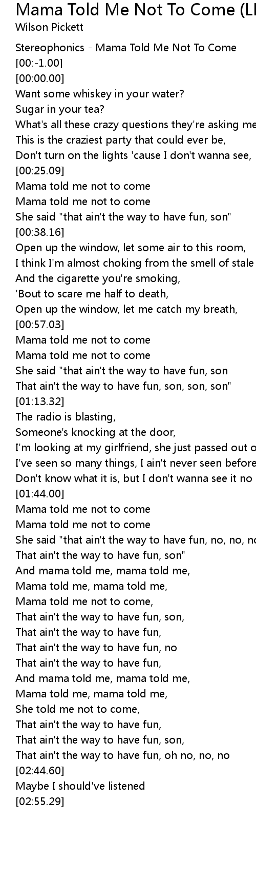 [02:03.99] Mama told me not to come,