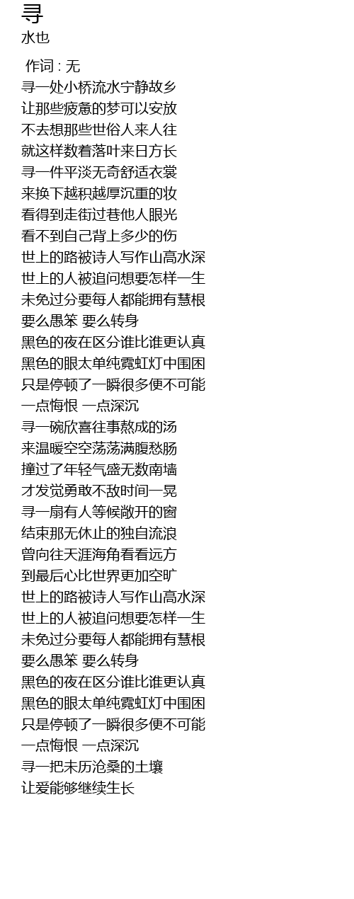 | [00:28.744] | 寻一处小桥流水宁静故乡 |