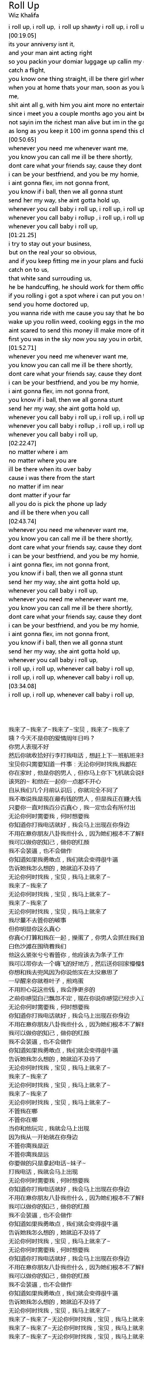 whenever you call baby i roll up, i roll up, i roll up, |