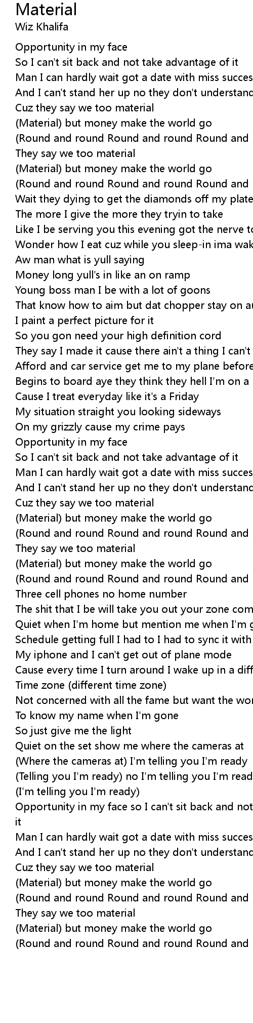 (Material) but money make the world go |