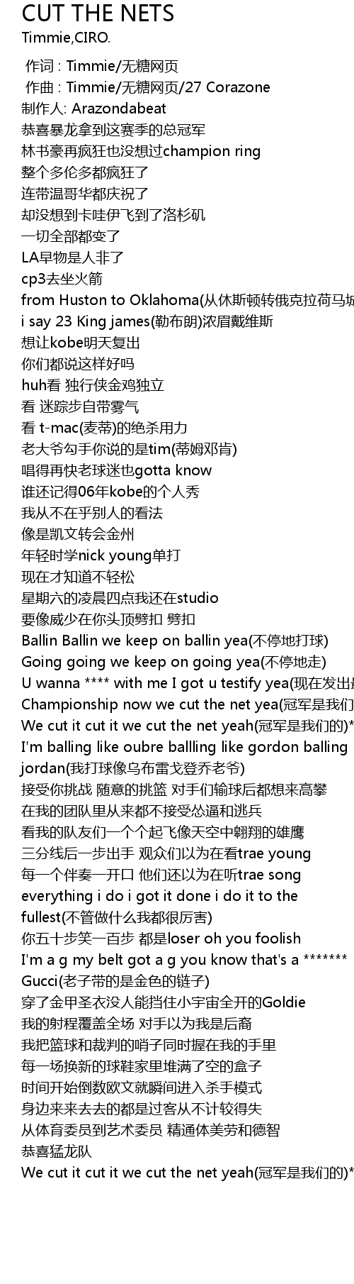 | [01:24.201] | We cut it cut it we cut the net yeah guàn jūn shì wǒ men de 4 |