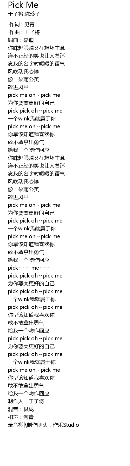 | [02:17.47] | pick me oh~pick me |