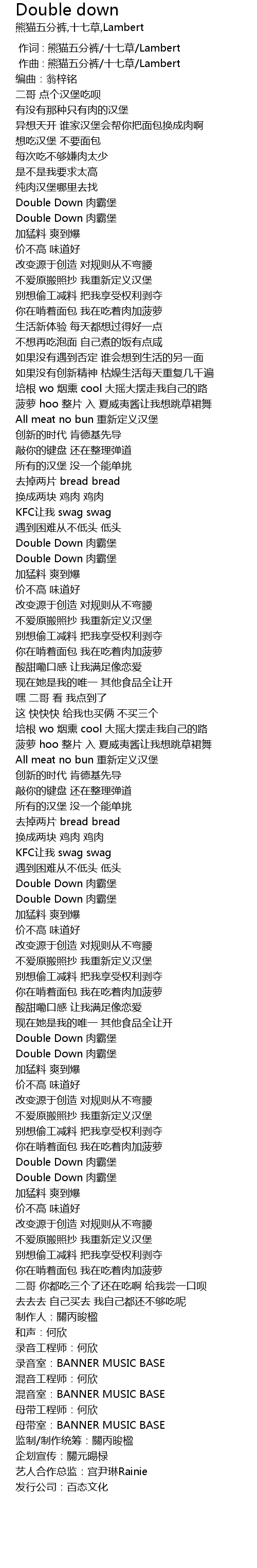 | [00:17.901] | Double Down ròu bà bǎo |